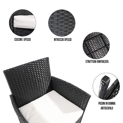 Splendido e pratico salottino in polyrattan per 4 persone.