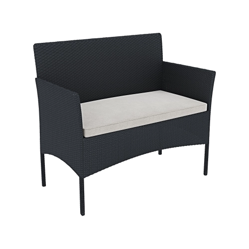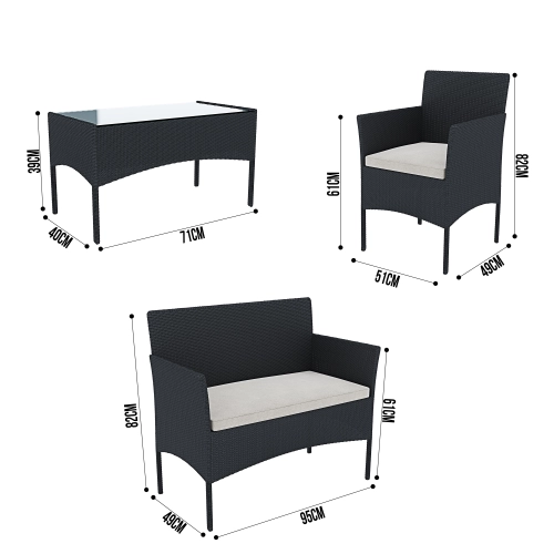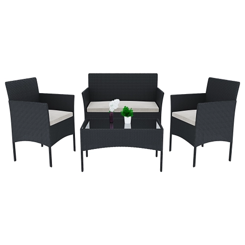 Set Di Mobili da Giardino Salotto Salottino in Rattan 4 Posti con Tavolino E Ripiano In Vetro 2 Poltrone e Divano 2 Posti Per Giardino Esterno Piscina Cuscini Sfoderabili Colore Nero