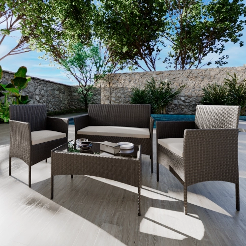 Splendido e pratico salottino in polyrattan per 4 persone.